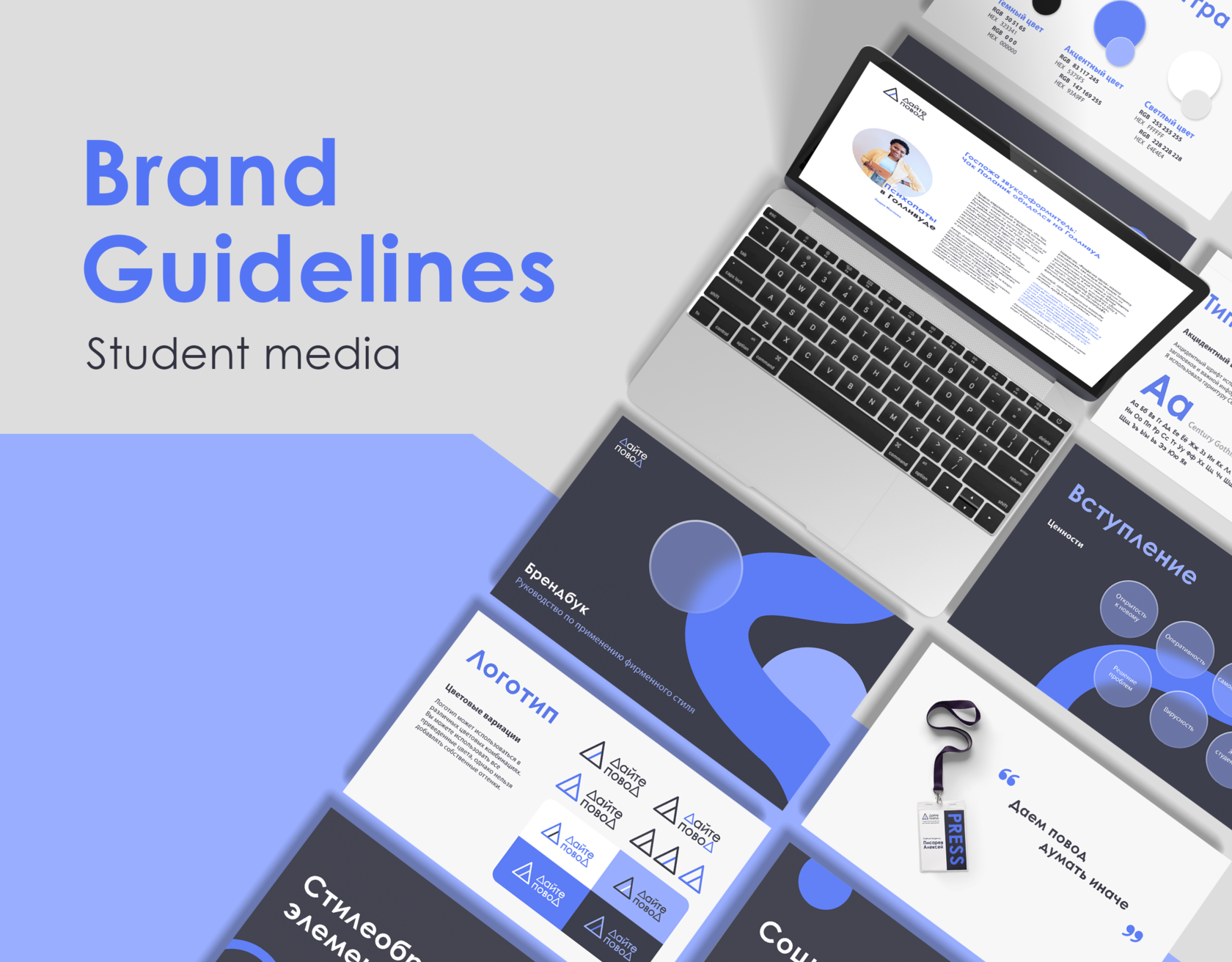 The corporate identity of the student media brand “Give a reason” is formed due to many components. The following pages will help you understand how to organize the entire subsequent design of the organization in the best way in accordance with its goals. "Give a Reason" is the first student mass media in the Far East, focused exclusively on young people and students of the Far East.