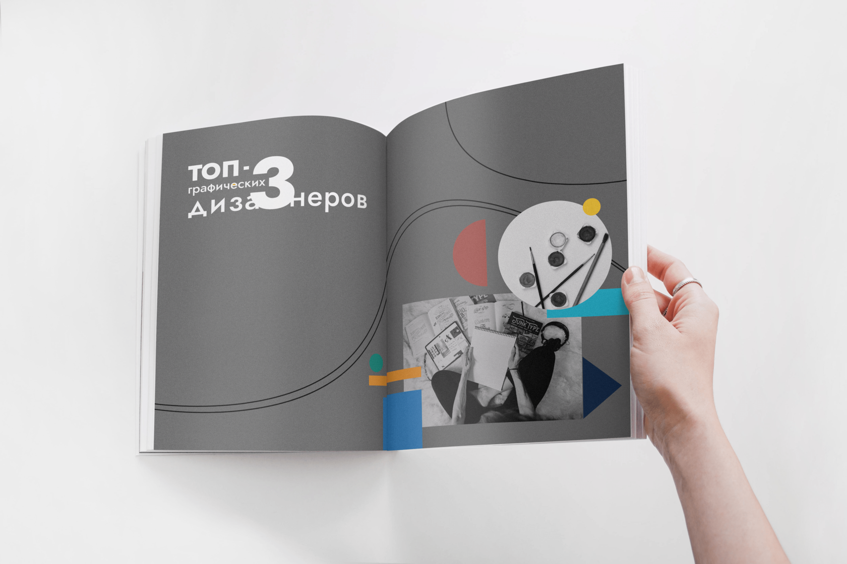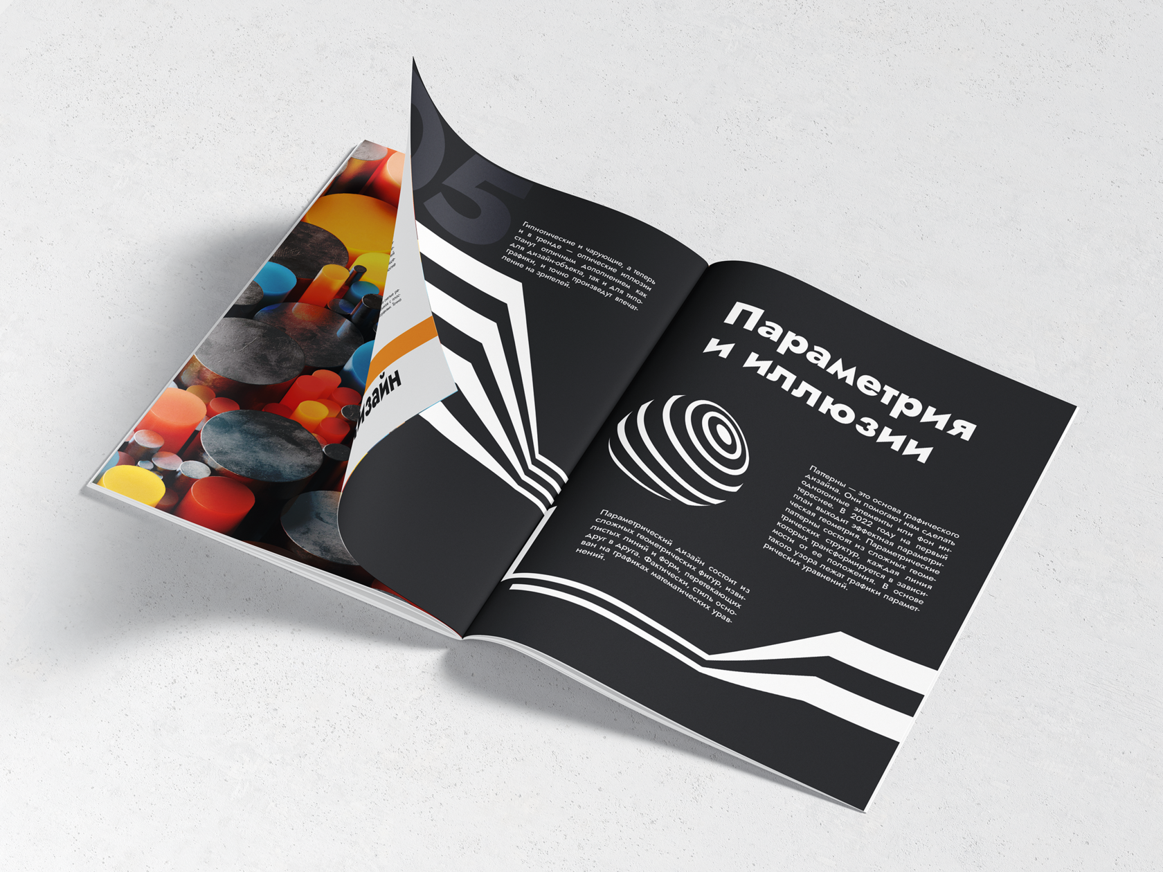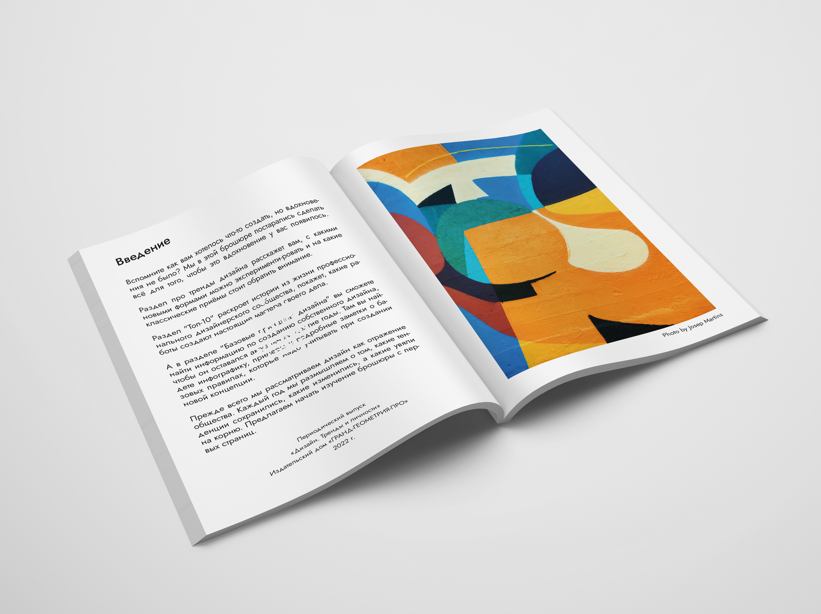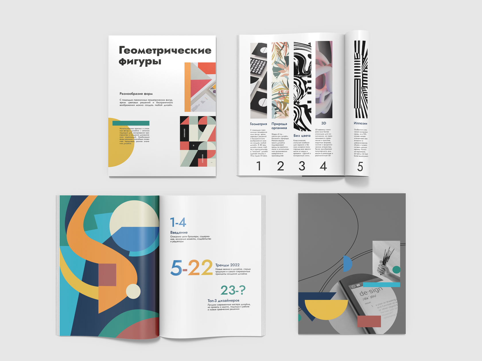 When building the brochure concept, we limited the scope of the metaphor search to certain criteria. The first criterion is impression. The impression had to be bright to match the informal style, concise to increase the fluency of perception of information, premium – so that the consumer felt special and wanted to dive deeper into the world of design. We chose geometrization and emphasized chaotic minimalism.