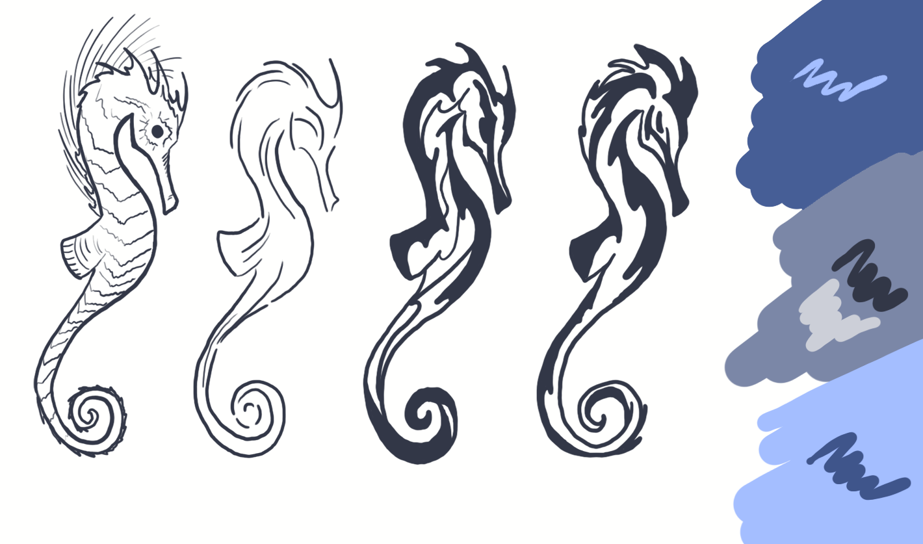 This choice is not accidental – in the series we offer a certain color key, where each color is associated with a marine theme, the time of year and a certain animal – with its habitat or activity. For example, the bluish-blue northern waters, in which the seal lives, are beautiful in spring – it is at this time of the year that the animals come ashore. The bluish-green waters of warm seas are full of green sea turtles in summer – this is the time for their reproduction. In the bluish-purple depths of the ocean, you can meet seahorses. And in the blue tropical waters – to see dangerous sea wasps. The color scheme is designed in the same style and palette. All elements are introduced in conjunction with others – be it graphic details, color or stylized images of animals.