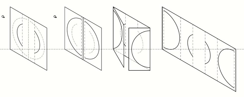 During the transformation, not only graphic meanings change, but also functional ones. What was insignificant becomes significant and vice versa. The transformation of the image through the transformation of the form occurs through a series of manipulations with the design of the postcard.